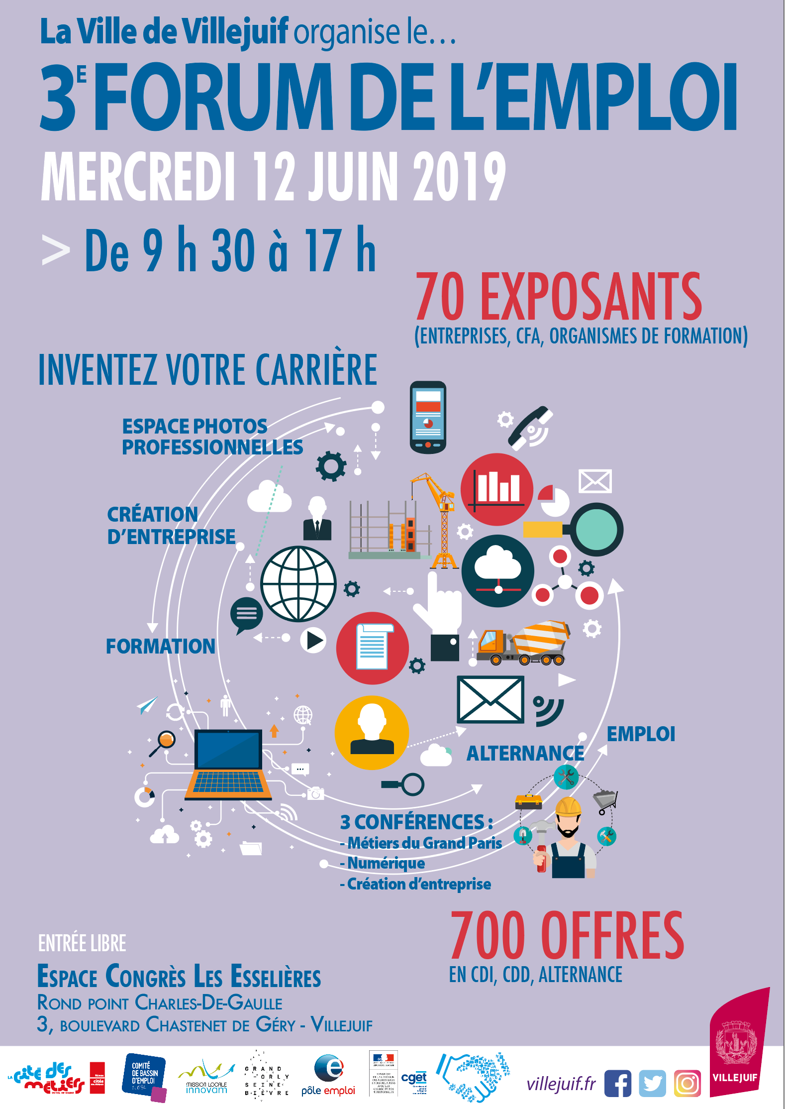 Création d'affiches pour des collectivités territoriales, associations et autres… Déclinaisons en différents formats sur demande : A3, 40/60, mupy, 8m2, calicots, flammes…