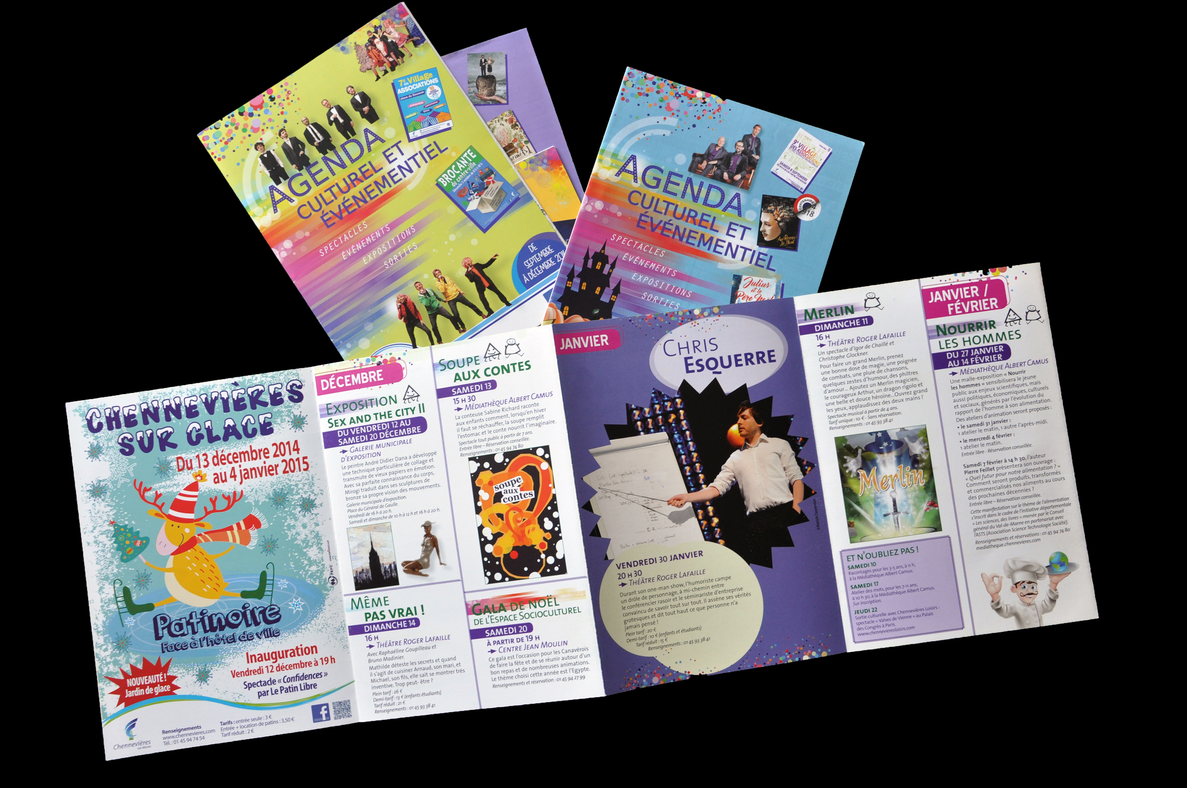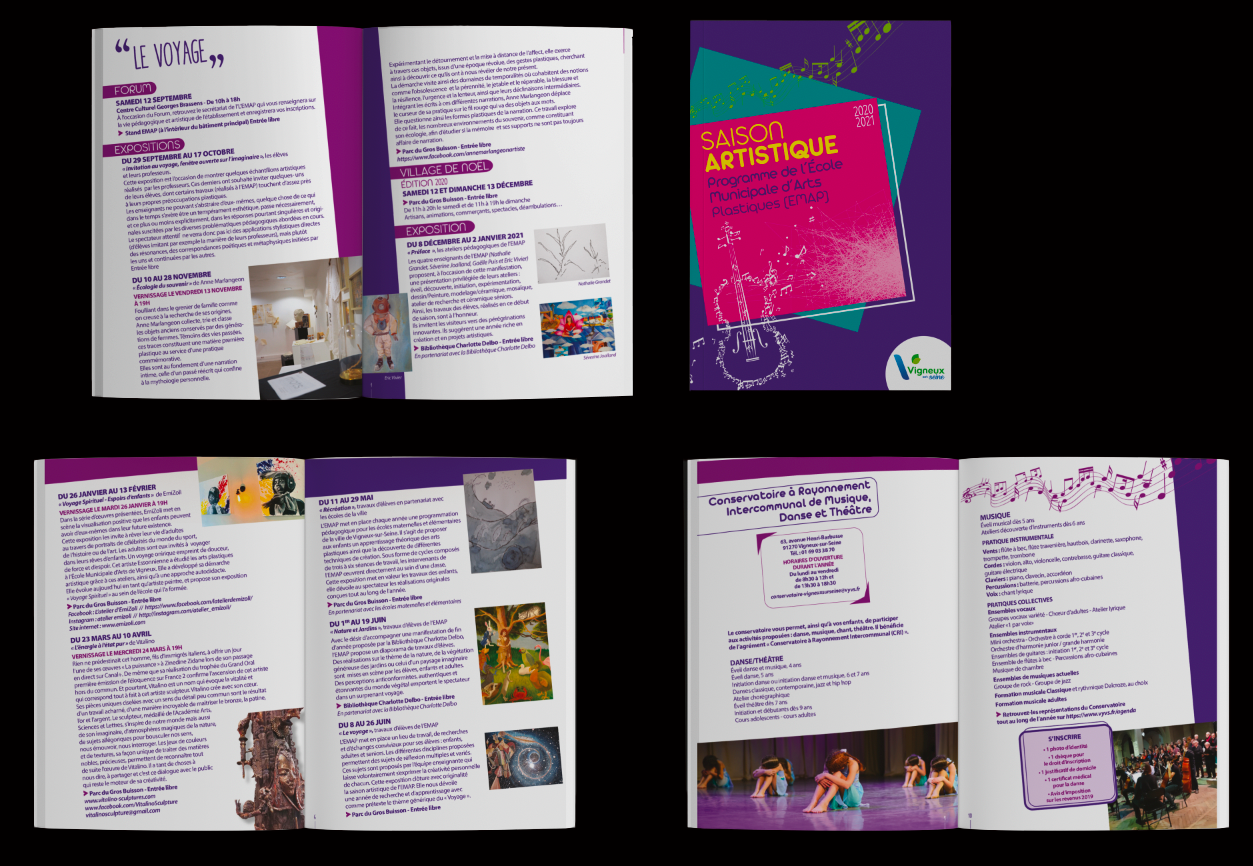 Réalisation de 4 pages, de dépliants, de flyers, de programmes, d'invitations, de cartes de vœux, d'identités graphiques complètes…
